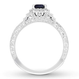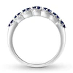 Sapphire Anniversary Band 1/4 ct tw Diamonds 10K White Gold